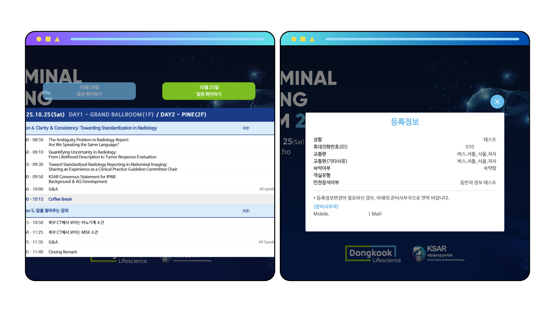 행사 일정, 연자진 소개 등 행사 정보 제공