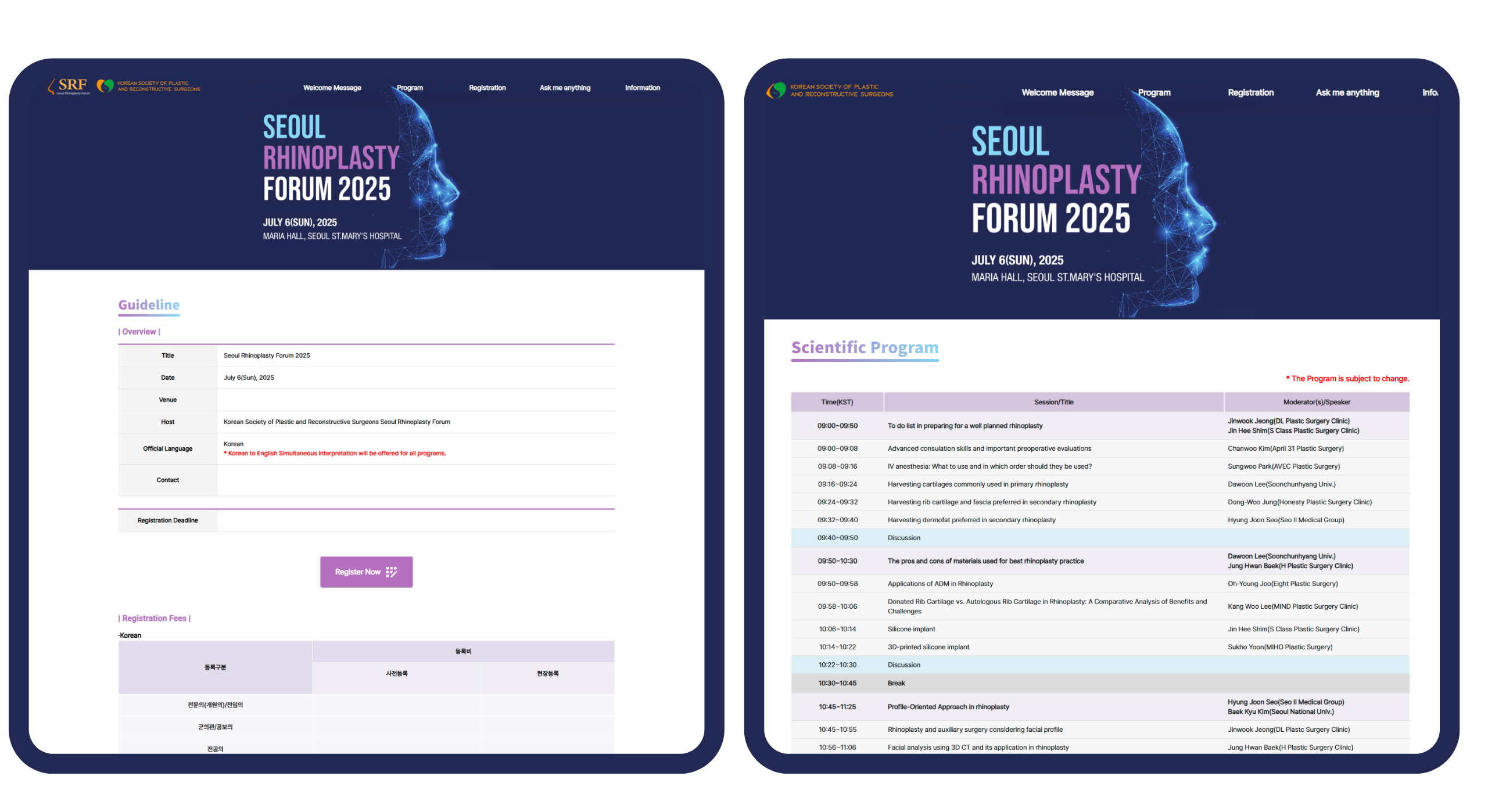 Seoul Rhinoplasty Forum 2025는 대한성형학회 주최로 2025년 7월에 진행된