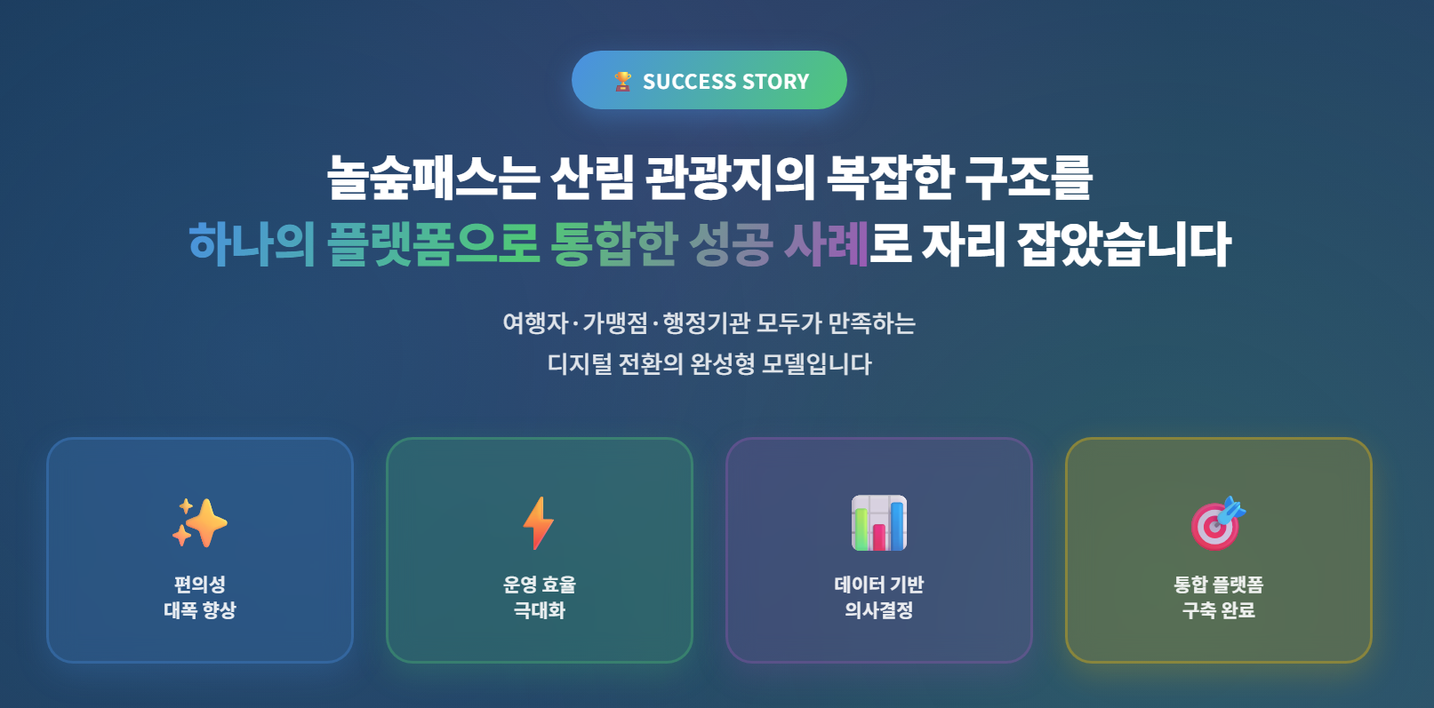 “산림 관광을 모바일 기반 통합 패스 시스템으로 전환하자.”