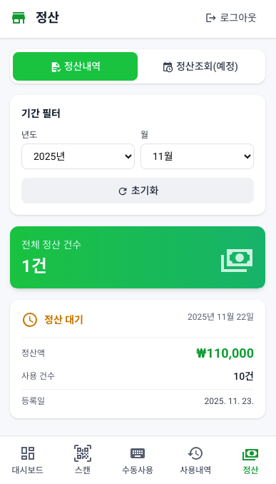 ✔ 가맹점 자동 정산