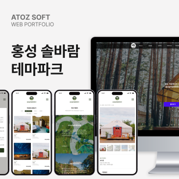 안녕하세요 아토즈소프트입니다. 홍성 솔바람 테마파크는 캠핑장 소개부터 예약, 주변 관광지 안내까지 캠핑 이용자가 필요한 모든 정보를 확인할 수 있는 반응형 웹 기반 캠핑장 플랫폼입니다. 캠핑장 시설 안내, 이용 규정, 주변 여행지, 체험 정보 등을 모바일과 PC 모두에서 보기 편하도록 구성했으며 캘린더 기반 예약 기능을 통해 사용자가 실시간 현황을 직접 확인하며 예약할 수 있도록 구현했습니다. 관리자는 통합형 관리자 페이지에서 시설 정보, 예약 현황, 운영 정보를 함께 관리할 수 있어 캠핑장 운영 효율성을 높였습니다. 캠핑장 예약 플랫폼이 필요하신가요? 솔바람 테마파크처럼 캠핑·글램핑 시설은 예약 UI/UX가 중요합니다……….